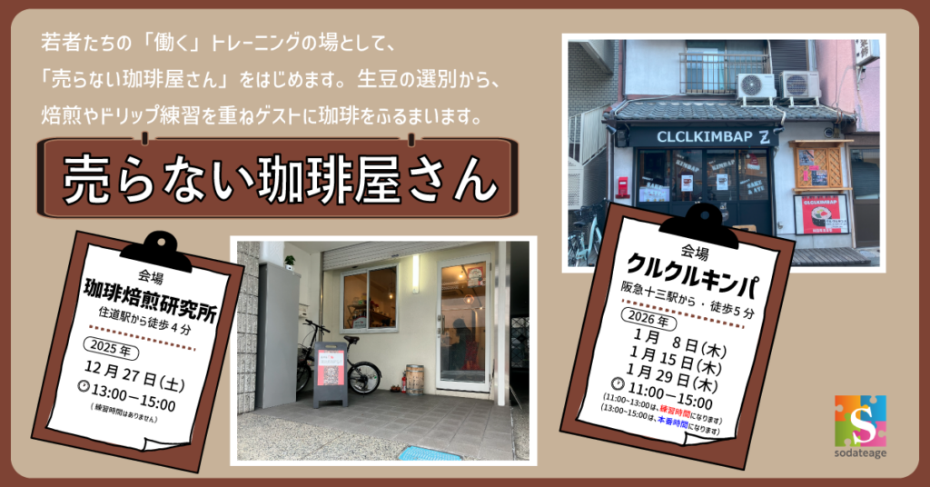 育て上げネットでは、大阪の支援拠点で「コーヒー」をテーマにした支援を行ってきました。コーヒーを淹れ、誰かにふるまう。この過程から人との関わりを経験してもらう活動です。